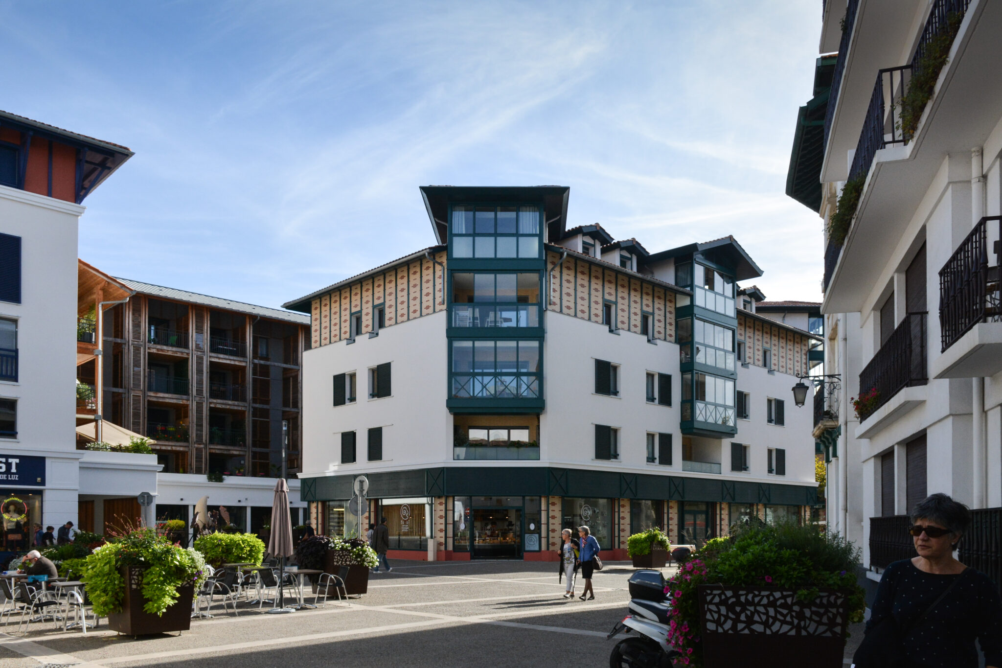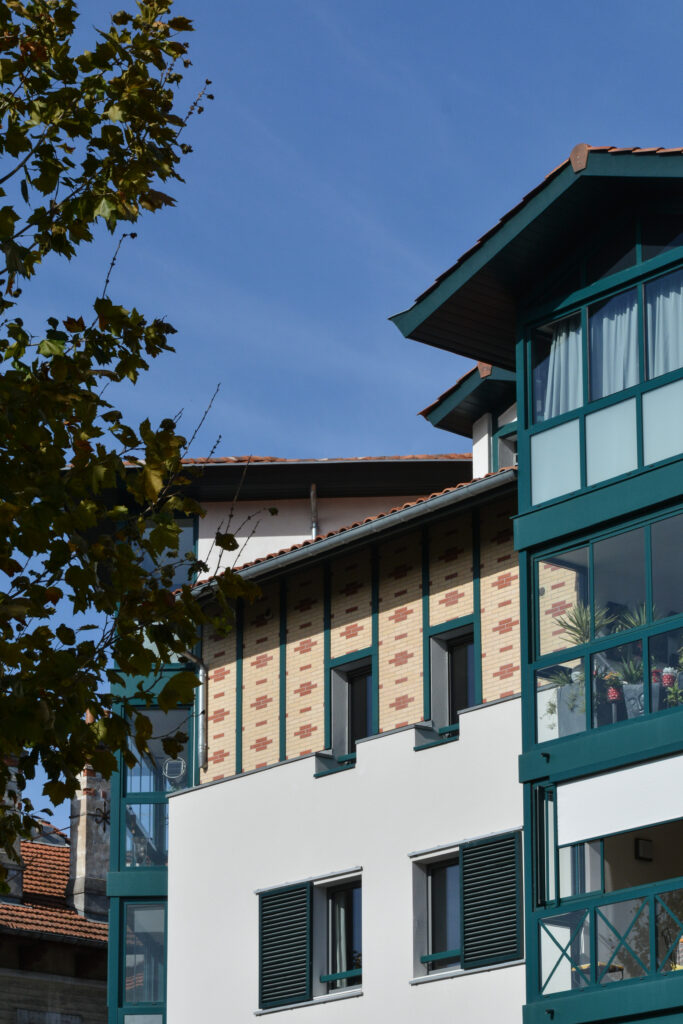 Par ses volumes et ses choix de matériaux, la conception architecturale de la résidence Les Érables lui insuffle un caractère à la fois très typique et contemporain. Ses tours d’angles, ses lucarnes et plus globalement l’ensemble de sa structure font volontairement ressortir en façade l’élégance du style basque. Avec ses menuiseries bois de couleur, elle affirme sa différence tout en respectant le patrimoine architectural de ce quartier empreint d’Histoire.
