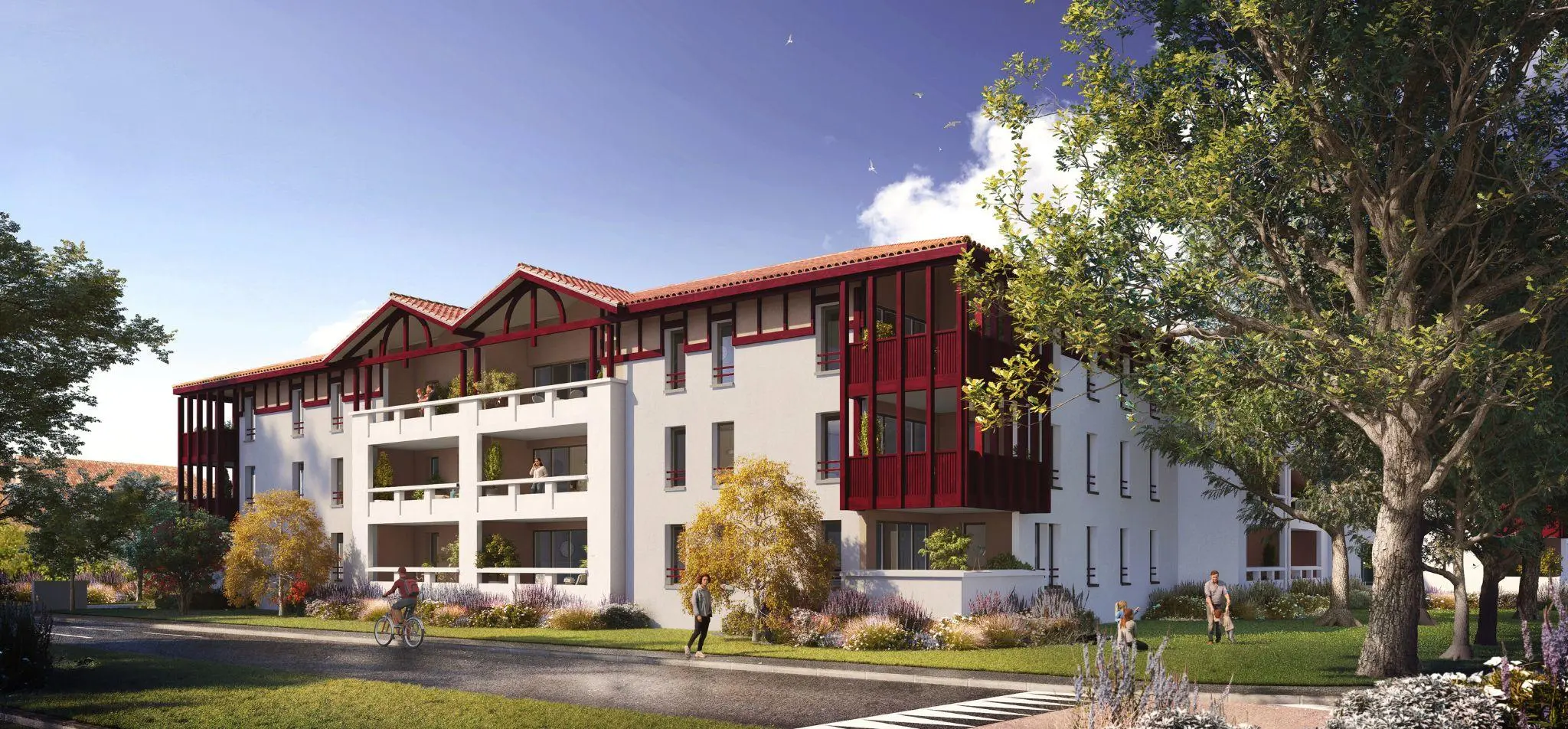 Reprenant les codes de l’architecture basco-landaise, elle s’intègre parfaitement dans son environnement immédiat. Pour un quotidien des plus agréable, la résidence est entourée d’espaces verts et du Parc de Sencion.